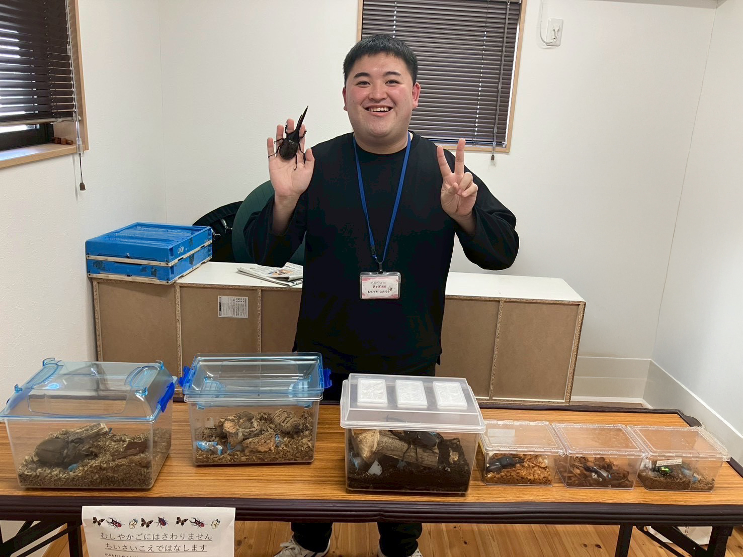 私はカブトムシやクワガタ等の昆虫を自宅で飼うほど好きで、夏は週に3回ほど昆虫採取に行きます。トロフィーグループに通う子ども達も昆虫が好きな子がたくさんいます。そこで私は昆虫博士になっていろんな事業所に行き、昆虫採取の方法やカブトムシクワガタの特徴について説明したりクイズを出したりします。自分の好きな事や得意な事を活かして子どもたちを楽しませることができるのは、トロフィーグループで働く理由の一つです。